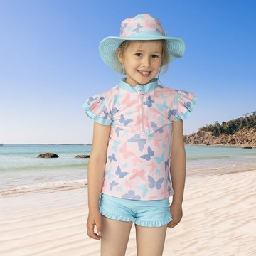 德國Playshoes - 抗UV防曬短袖兩件組兒童泳裝-蝴蝶