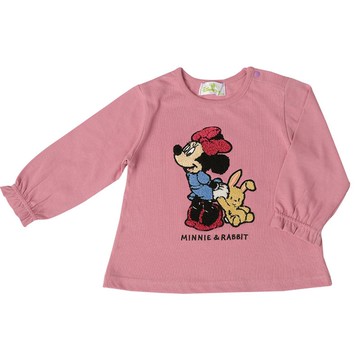 akachan honpo - 長袖T恤-米妮 凸毛繡-粉紅色