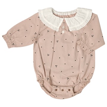 【Deux Filles有機棉】嬰兒長袖側開襟包屁衣/連身衣 粉花