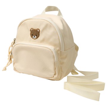 附防走失帶,可和幼童一起在街上散步。防走失帶可拆卸。立體的小熊刺繡非常可愛。正面的口袋可收納拆下來的防走失帶