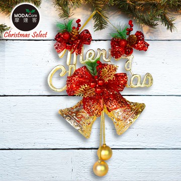 MODACore 摩達客 - 台製精緻12吋聖誕快樂英文字牌雙鐘吊飾-紅金系(歐美外銷人氣品)