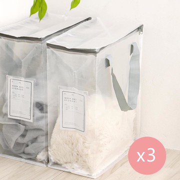 日本 3COINS - [日本主婦推薦] 半透明多功能直立式衣物收納袋(附提把) 3入組-淺灰 (L(20×36×47cm))