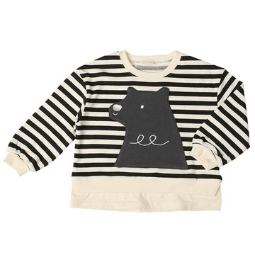 日本 apres les cours - [人氣]俏皮印花短袖上衣-熊熊條紋-黑x白