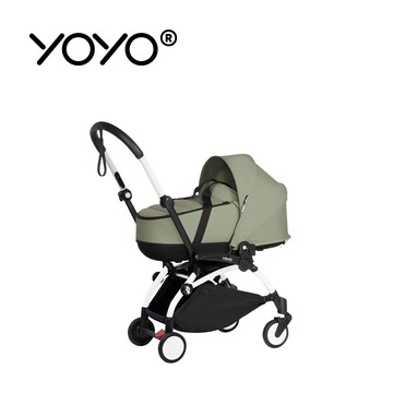 Stokke - YOYO² 法國 Bassinet 0+新生兒睡籃推車(含車架)-白色車架+橄欖綠睡籃
