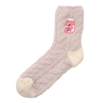 日本 friendshill - 可愛刺繡柔軟針織保暖室內襪-草莓牛奶-淺粉 (22-25cm)