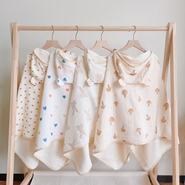 外貿挪威S家嬰兒純棉浴巾寶寶浴室披巾吸水斗篷毛巾料新生兒抱被