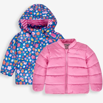 英國 JoJo Maman BeBe - 三合一多功能防水保暖外套-草莓花圃