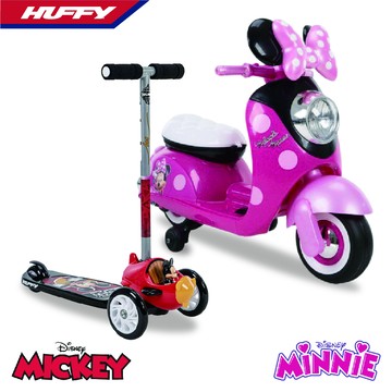 HUFFY - Disney正版授權經典角色組(米妮電動車+米奇3輪滑板車)