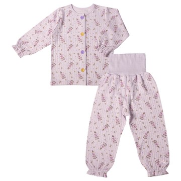 冬季版幫助兒童練習穿衣的家居服。表布和內裡間有鋪棉,打造出蓬鬆保暖的質感。上衣釦子顏色和扣眼的顏色一樣,可防止扣錯。附肚圍,翻身時也不需擔心會露出小肚肚。紫色款為獨角獸滿版圖案