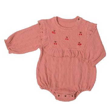 【Deux Filles有機棉】嬰兒長袖側開襟包屁衣/連身衣 櫻桃