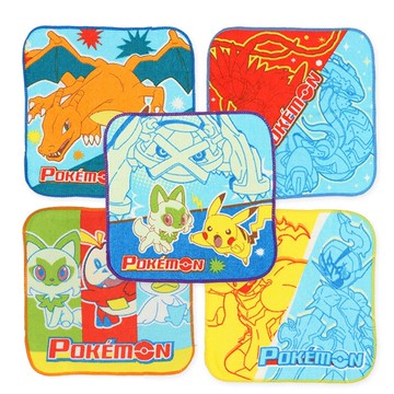 日本西松屋 - 純棉上學擦手巾/手帕(5入組)-卡通人物寶可夢-戰鬥款 (16×16cm)