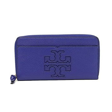 TORY BURCH - 雙T-LOGO皮革拉鍊長夾 (深藍)