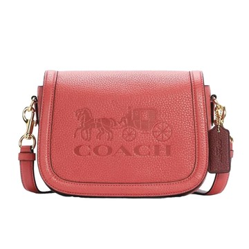 COACH - 馬車LOGO翻蓋斜背馬鞍包 (珊瑚色)