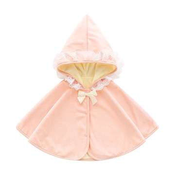 JoyNa - 保暖加絨斗篷 公主風 寶寶披風 加絨/棉布-粉色蕾絲 (絨布款-110碼)