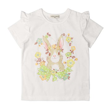 日本製短袖T恤。兔子印花搭配袖子的荷葉邊,非常甜美可愛。百搭、純棉的天竺材質。膚觸舒適、透氣又吸水。是一款適合日常重度使用的單品
