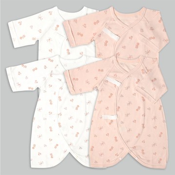 akachan honpo - 新生兒內衣5件組短袖-米飛兔-米白色 (50~60cm)