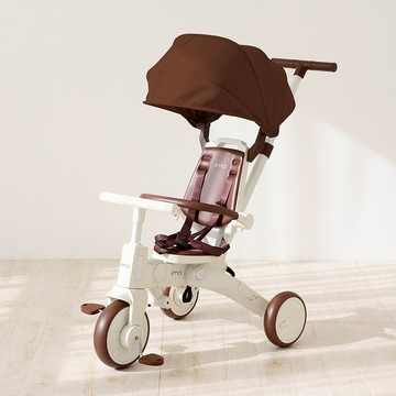 iimo兒童三輪車02遮陽款 棕色 可拆卸遮陽篷 加長型推桿 安全舒適 1個