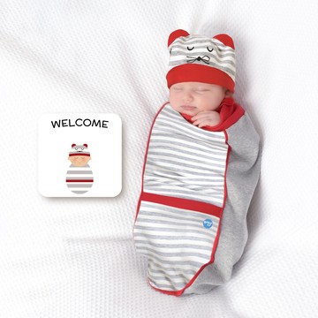 BABYjoe - 美國製純棉手工新生彌月包巾套組-彎彎笑鼠來寶寶-灰色 (適合0-4個月或7公斤以下新生寶寶)-150...