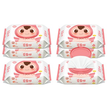 順順兒 - 無香壓花嬰兒濕巾(馬卡粉) 6包組(80抽)-效期2025/10/17