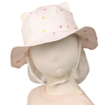 akachan honpo - 小耳朵帽-附防曬遮陽布 水果-米白色