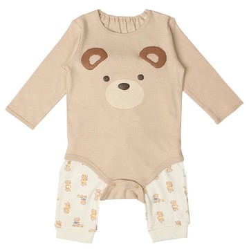 akachan honpo - 長袖包屁衣家居服-雙面羅紋 小熊-咖啡色