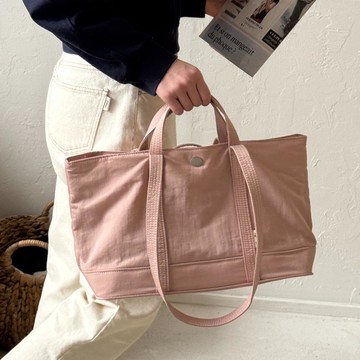 韓國 THEALLY - 小眾設計 (附小拉鍊包)尼龍輕量手提/肩背包-粉