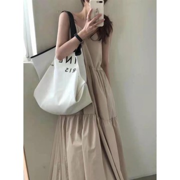 日本 GRL - 甜美綁帶分層背心長洋裝-卡其 (F)