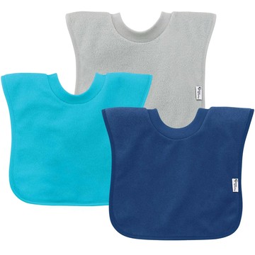 美國 green sprouts 小綠芽 - 三層吸水防水純棉【口水巾圍兜】、【吃飯圍兜】3入組-深藍組