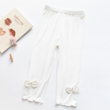 FANMOU - 莫代爾透氣七分內搭褲-大蝴蝶结-白色
