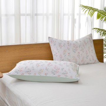 枕頭套_寫一首情詩100%有機棉枕頭套一對_清新石英粉紅拚奶油棕