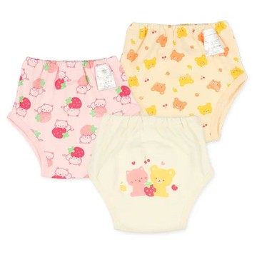 日本西松屋 - 三層密縫式學習褲3件組-小熊貓咪-粉紅黃