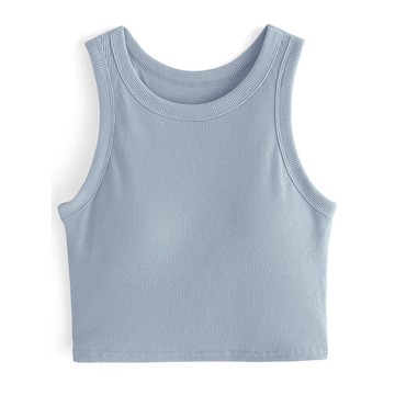 日本 GRL - 時尚顯瘦短版削肩背心(附Bra)-灰藍
