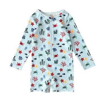 防曬長袖連身泳衣(附帽子)-海底世界-藍色