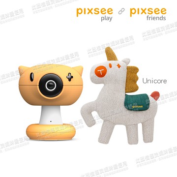 pixsee - Play and Pixsee Friends AI 智慧寶寶攝影機/監視器+AI互動玩具+支架 1080P 500萬畫素 (獨角獸...