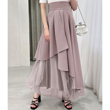 日本 GRL - 薄紗不對稱優雅長裙(後腰鬆緊)-粉紅