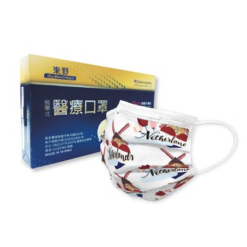 東野 - 環遊系列台灣製/雙鋼印醫療級成人口罩(拋棄式未滅菌)-荷蘭 (17.5×9.5cm)-10入/盒