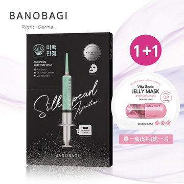韓國 BANOBAGI - 【BANOBAGI】豪華絲綢珍珠針劑面膜(5入)+贈1片 活力緊緻維生素果凍面膜-30g x5入