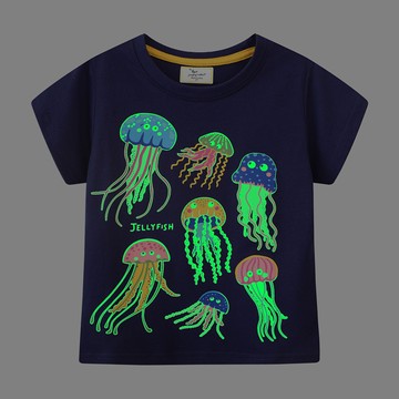 Jumping meters - 夜光圓領短袖上衣-彩色水母-深藍色