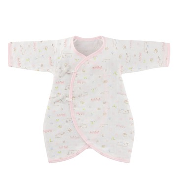 日本 Combi - 純棉柔紗-快樂車車 紗布蝴蝶裝-(粉) (F)