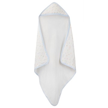 日本 Combi - 純棉柔紗-快樂車車 連帽浴巾-(藍) (75*75cm)