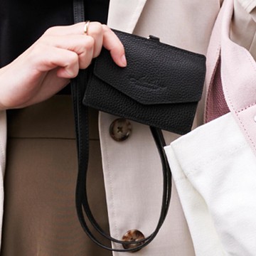 日本 LIZDAYS - 質感真皮名片包/通行證卡夾-(附掛繩)-黑 (10.5x8cm)