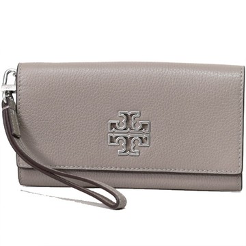 TORY BURCH - 雙T LOGO皮革翻蓋長夾 (淺卡)