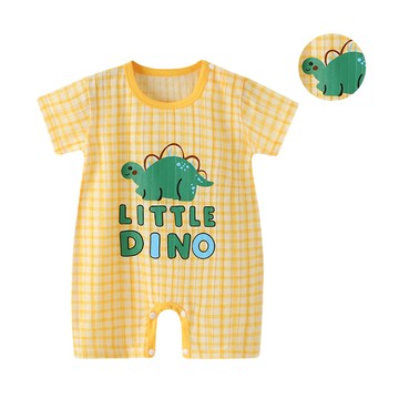 點我下載JoyNa - 短袖包屁衣 薄款透氣卡通連身衣-黃格恐龍