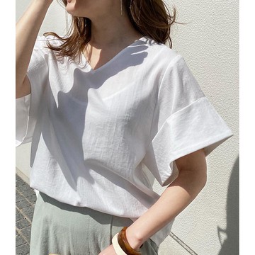 日本 Kobe Lettuce - 美型特色袖亞麻感上衣-白 (大寬袖)