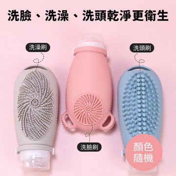TRAVEL LIFE - [從頭到腳搞定組]安全防漏 便攜 好清潔 旅行必備矽膠分裝瓶100ml-洗頭+洗臉+洗澡專用刷頭...