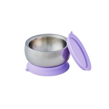 美國little.b - 316雙層不鏽鋼吸盤碗-夢幻紫-(碗*1, 上蓋*1, 吸盤*1)