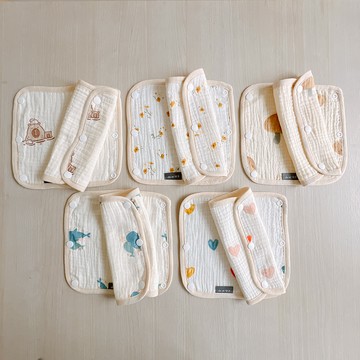 4個月到2歲以前的寶寶口水氾濫。也因為長牙的不適常咬東咬西。導致背帶總是沾滿了口水,清洗不易。四層紗背帶口水巾 全新登場。吸濕能力好,輕鬆扣在背帶上