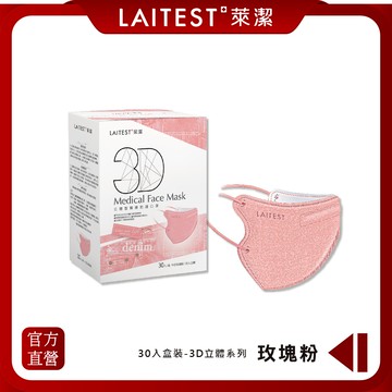LAITEST 萊潔 - 3D立體型醫療防護口罩(成人用)牛仔玫瑰粉 30入盒裝