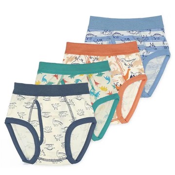 日本西松屋 - 前開式男孩三角內褲(4件組)-滿版恐龍-藍綠橘系