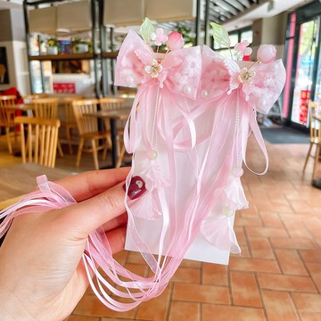 霧裡櫻少女粉紅千層蝴蝶結橡皮筋